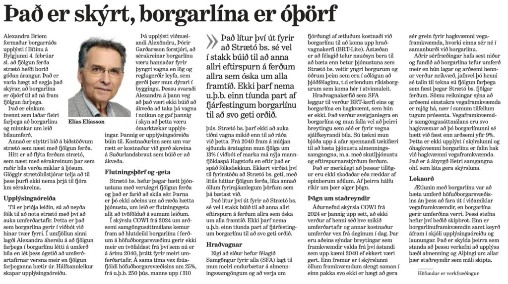 Neikvæð áhrif borgarlínunnar á bílaumferð